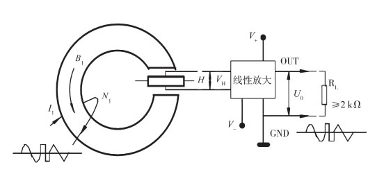 霍爾電流傳感器以霍爾元件為核心,用于隔離檢測電流的傳感器。當電流流過一根導(dǎo)線時,將在導(dǎo)線周圍產(chǎn)生磁場,磁場的大小與流過導(dǎo)線的電流大小成正比,這一磁場可以通過軟磁材料來聚集,然后由霍爾元件來檢測,用霍爾元件在磁芯氣隙處感應(yīng)原邊電流IP的大小和方向。霍爾元件的輸出電壓,經(jīng)過信號處理電路,使傳感器的輸出可以反映被測電流的大小。